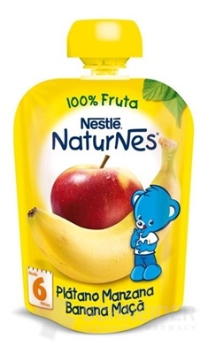 Fruchtsnack, pasteurisiert. Ab dem Ende des 6. Monats. 100 % Frucht ohne Zuckerzusatz, Konservierungsstoffe und Farbstoffe.