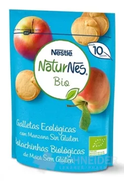 Apfel-Bio-Kekse ab Ende des 10. Monats. Als Snack geeignet. Glutenfreies Produkt.