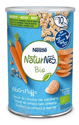 Bio-Weizen-Hafer-Chips mit Karotte und Orange. Extrudiertes Produkt. Geeignet für Kinder ab 10 Monaten.