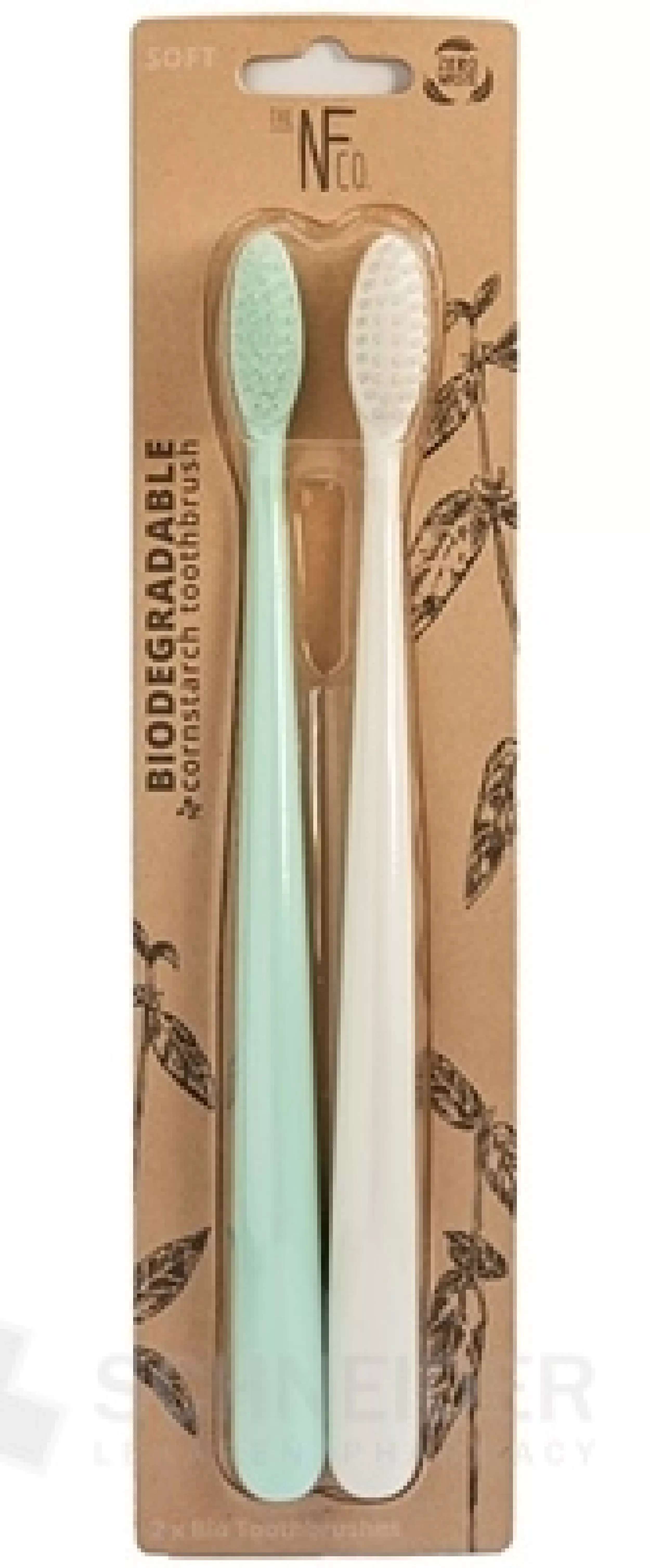 BIO-Zahnbürste: mit weichen Nylonborsten und einem Griff aus gentechnikfreier Maisstärke, einem abgerundeten Kopf...