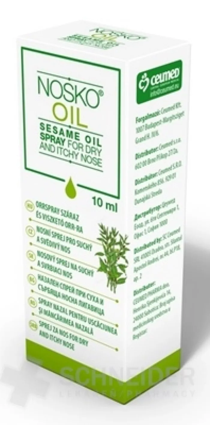 Ein natürliches Nasenspray auf Basis von Sesamöl, das die Nasengänge mit Feuchtigkeit versorgt und weich macht, den Juckreiz lindert und die Bildung von trockenem Schleim verhindert. Befeuchtet eine trockene Nase. Wird traditionell für die Nasenschleimhaut verwendet. Es hilft, die Nasenhöhle zu schmieren und zu erweichen. Mehr unter adcc.sk
