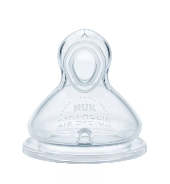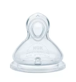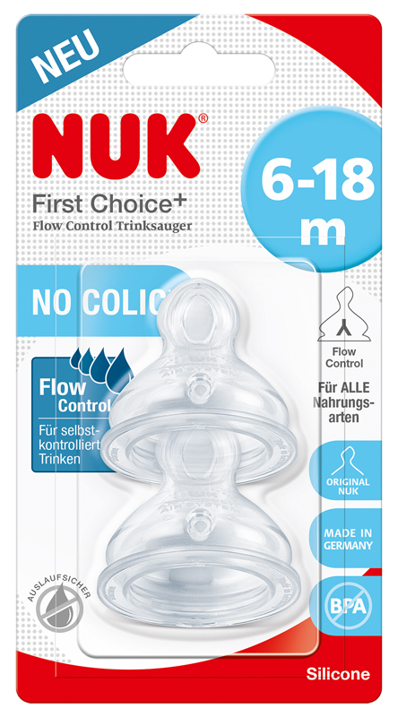 NUK First Choice+ Durchflusskontrolle Silikonmundstück, Schnuller für die richtige Entwicklung des Kiefers, tropffrei, 6–18 Monate.