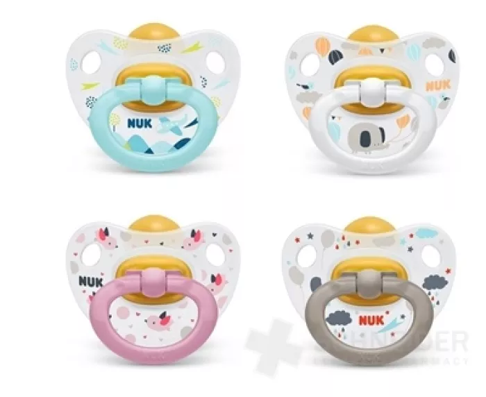 - Verbesserte Form des NUK-Schnullers – der Schnuller hat beim Stillen die gleiche Form wie die Brustwarze der Mutter und passt beim Saugen perfekt in den Mund des Babys