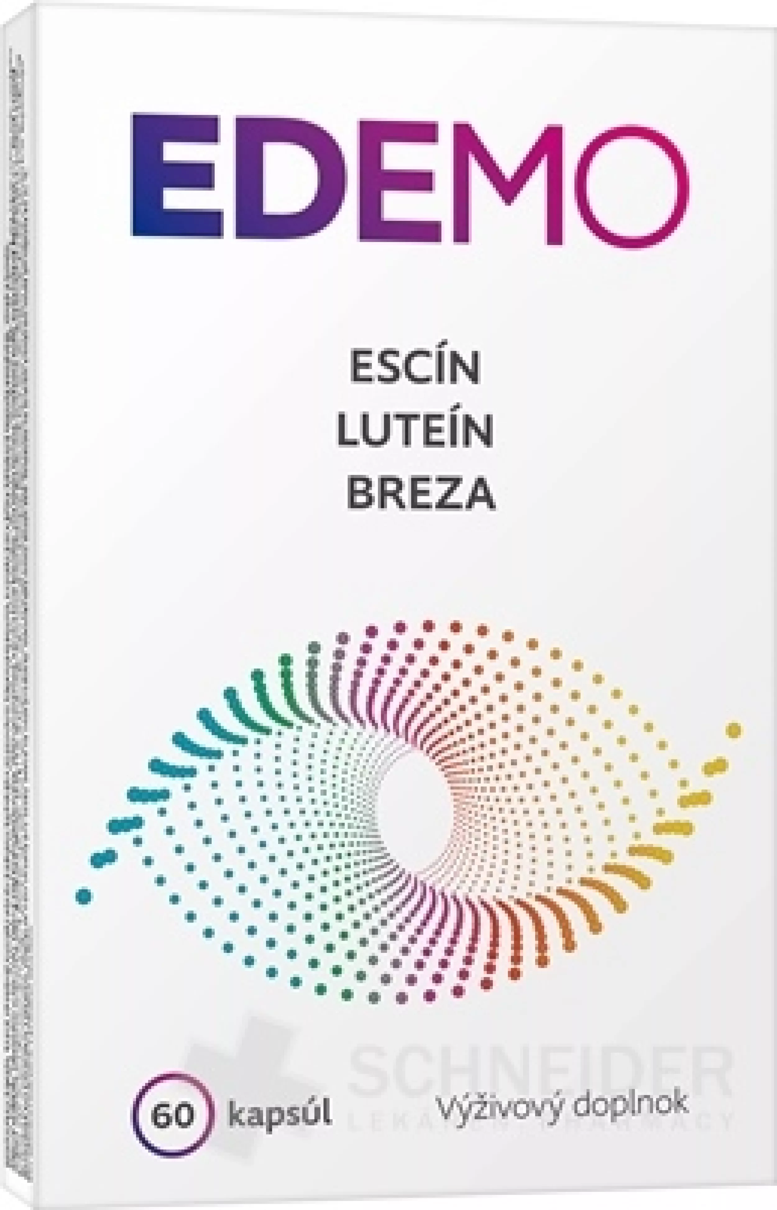 Nahrungsergänzungsmittel in Form von Kapseln mit Rosskastanienextrakt (Aesculus hippocastanum), Birkenrindenextrakt (Betula pendula), Zink und Lutein. Zink trägt zur Erhaltung einer guten Sehkraft bei. Lutein kommt in großen Mengen im zentralen Bereich der Netzhaut vor, der für scharfes Sehen verantwortlich ist.