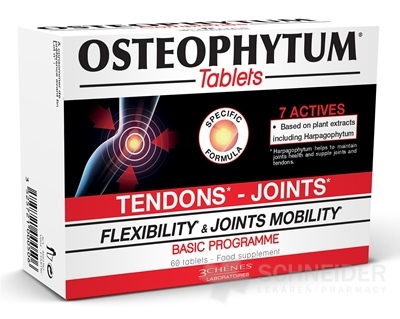 Nahrungsergänzungsmittel mit Teufelskralle – Hapagophyt ( Harpagophytum procumbens ), Glucosamin, Chondroitin, Fischkollagen, Extrakten aus schwarzen Johannisbeeren ( Ribes nigrum ) und Bambus ( Gigantochloa apus ) sowie Mangan.