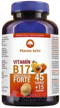 Nahrungsergänzungsmittel mit Amygdalin (Vitamin B17). Amygdalin ist ein Glykosid, das aus bitteren Aprikosenkernen isoliert wurde.