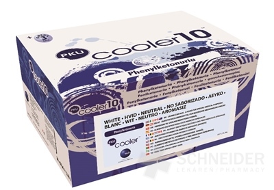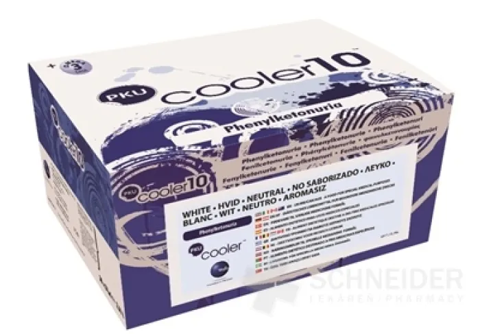 PKU cooler ist ein Präparat zum direkten Verzehr, ohne Phenylalanin*, enthält essentielle und nicht-essentielle Aminosäuren, Kohlenhydrate, Vitamine, Mineralstoffe, Spurenelemente und Docosahexaensäure (DHA). Enthält Zucker und Süßungsmittel.
