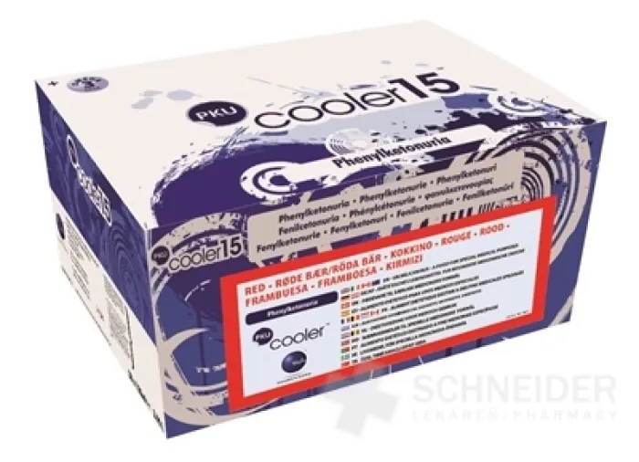 PKU cooler ist ein Präparat zum direkten Verzehr, ohne Phenylalanin*, enthält essentielle und nicht-essentielle Aminosäuren, Kohlenhydrate, Vitamine, Mineralstoffe, Spurenelemente und Docosahexaensäure (DHA). Enthält Zucker und Süßungsmittel.