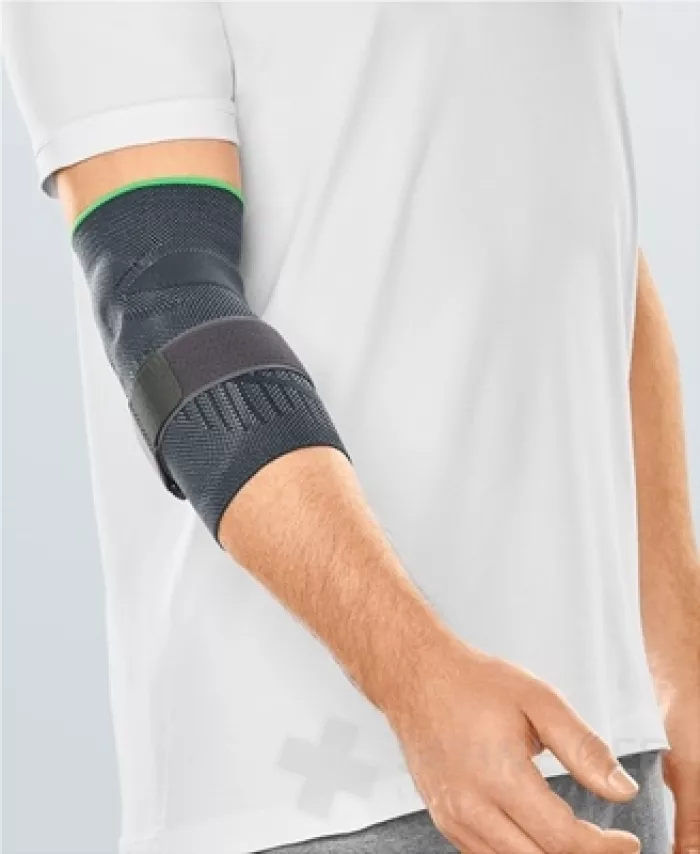 Medizinisches Gerät. Ellenbogenbandage mit Hosenträgern, verstärkt durch ein Gummiband, geeignet für: