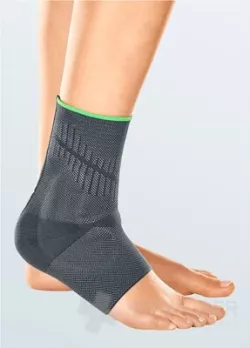Die Sprunggelenksbandage mit integrierten Pelotten ist gedacht für: leichte Sprunggelenksverletzungen, leichte chronische Instabilität, Schwellungen...