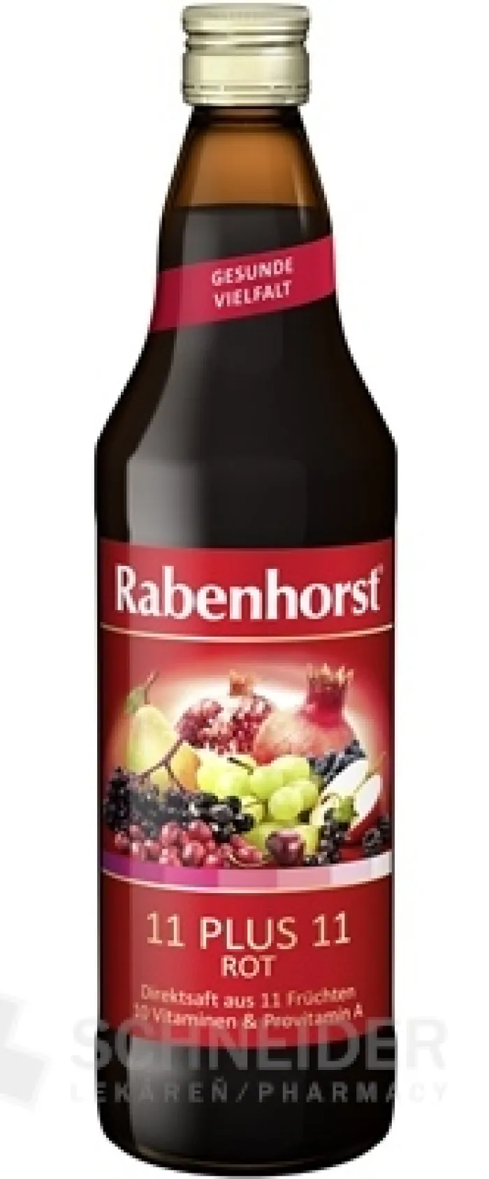 Originalsaft aus 11 roten Fruchtsorten und 11 Vitaminen. Der Referenzwert der Zufuhr in einer Tagesdosis von 200 ml deckt den Bedarf an Vitamin A zu 30 % und den restlichen Vitaminen zu 100 %.