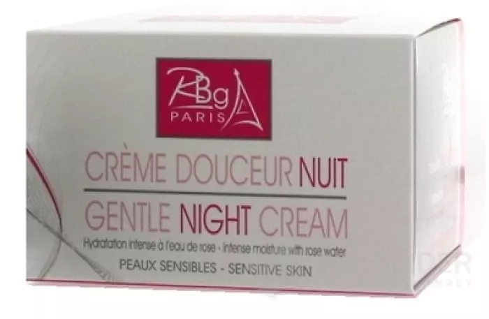 Sanfte Nachtcreme für trockene und empfindliche Haut. Enthält Rosenwasser aus Damaskus-Rosen (Rosa damascena), Sheabutter, Vitamin E. Für Frauen ab 40 Jahren.