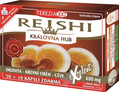Das Nahrungsergänzungsmittel enthält Reishi-Pilz (japanisch) – Ganoderma lucidum (lateinisch) – Schindelrinde (slowakisch) mit hohem Ballaststoffgehalt.