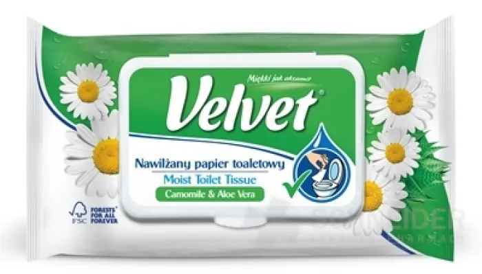 Befeuchtetes Toilettenpapier mit zartem Kamillenduft, geeignet für die ganze Familie.