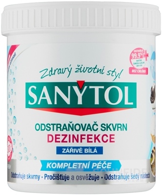 Sanytol, ein Desinfektionsmittel zur Fleckenentfernung, zerstört 99,9 % der Bakterien, Viren und Hefen und entfernt selbst bei einer Temperatur von 30 °C wirksam hartnäckige Flecken. Seine mit Enzymen angereicherte Zusammensetzung dringt in das Innere der Textilfasern ein und setzt fleckenlösende Wirkstoffe frei, wodurch ein perfektes Ergebnis für weiße Wäsche erzielt wird.
