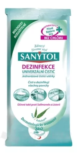 Sanytol Desinfektionstücher reinigen und desinfizieren Oberflächen. Dreifache Wirkung – entfernt 99,9 % der Bakterien, Viren und Pilze. Sie enthalten kein Chlor.
