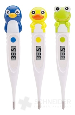 Digitales medizinisches Thermometer für Kinder mit flexibler Messspitze und Fieberalarm.
