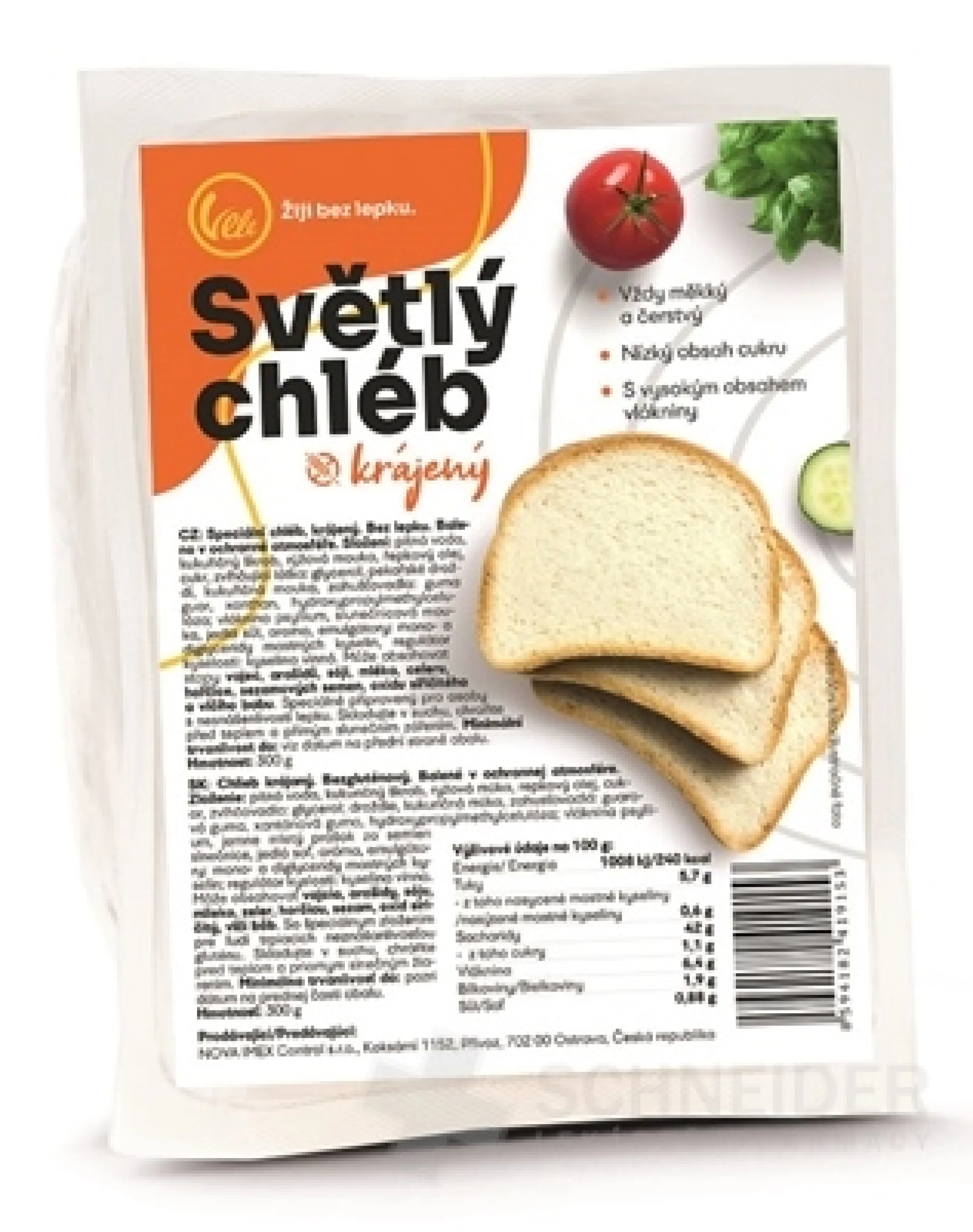 Helles Brot, geschnitten. Glutenfrei. Mit einer speziellen Zusammensetzung für Menschen mit Glutenunverträglichkeit. Unter Schutzatmosphäre verpackt. Immer weich und frisch, zuckerarm, reich an Ballaststoffen.