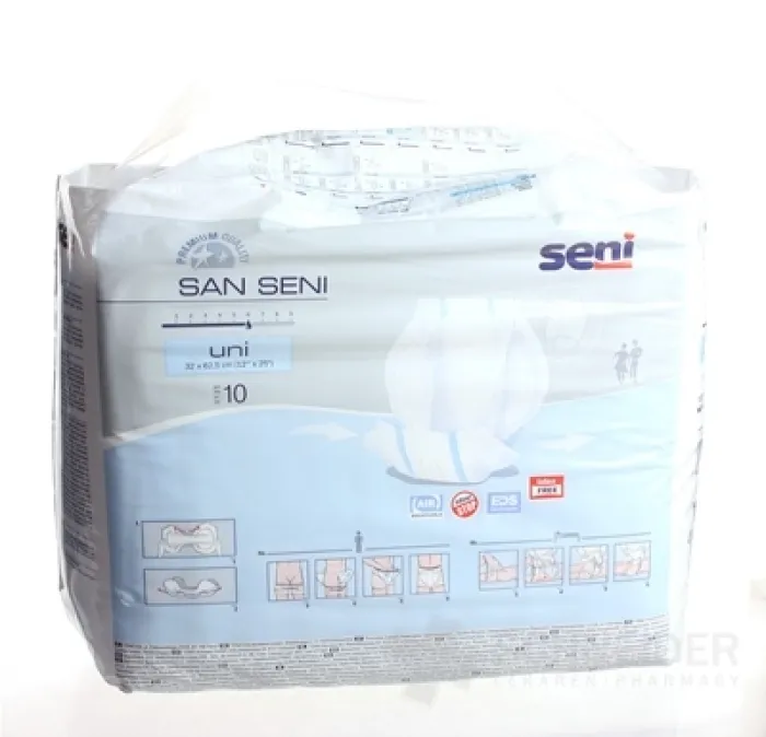 Anatomisch geformte Einlegewindeln für Inkontinenzpatienten. Geeignet für Männer und Frauen. Sie enthalten kein Latex. Maße: 32 x 64 cm, Saugfähigkeit 1700 ml.
