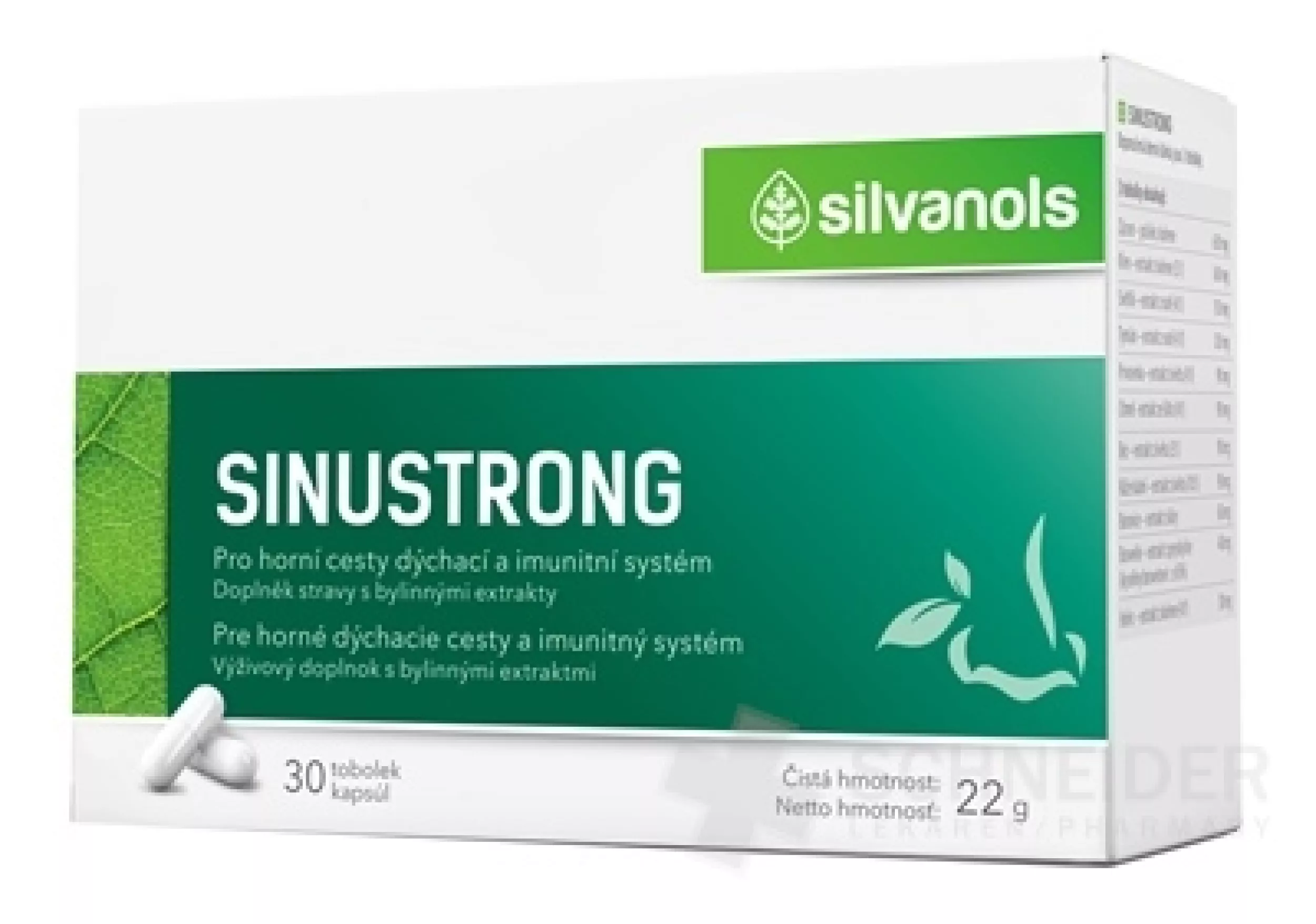 Nahrungsergänzungsmittel mit Kräuterextrakten in Form von Kapseln. Enthält medizinisches Ingwerwurzelpulver und Pflanzenextrakte: Meerrettich, Färberdistel, Thymianzweig, Primel, Hopfen, Holunder, Wildrose, Kiefer, Boswelia und Enzian.
