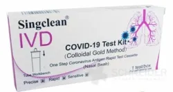 Testkit COVID-19 (Colloidal Gold Metod) (kolloidales Gold) – Antigen-Schnelltest für das Vorhandensein von Coronavirus (SARS-CoV-2) in der Nasenhöhle – für Nasenabstrich. Der Abstrichtest erkennt das Virus in der Inkubationszeit, in der Akutphase und der Anfangsphase der Erkrankung innerhalb von 15 Minuten.