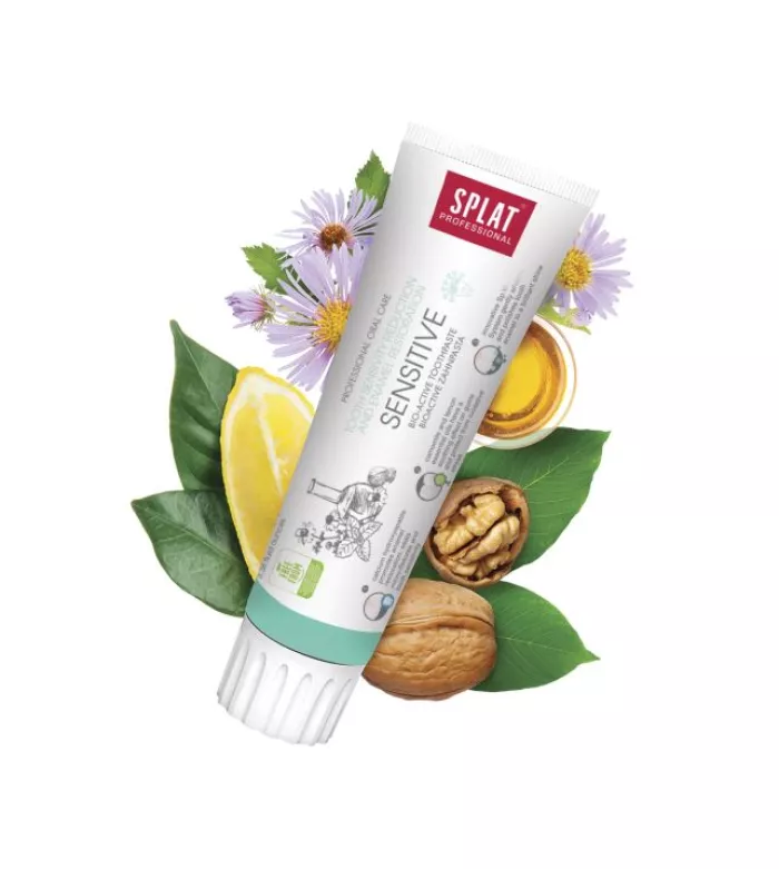 Pflege empfindlicher Zähne und Stärkung des Zahnschmelzes. Enthält Kamillen- und Zitronenöl, die eine beruhigende Wirkung auf geschwächtes Zahnfleisch haben. Der hohe Wirkstoffgehalt in Kombination mit der Nanohydroxylapatit-Komponente trägt zur Stärkung des Zahnschmelzes bei und reduziert die Zahnempfindlichkeit bereits nach wenigen Tagen der Anwendung. Die Kombination aus dem natürlichen Papain-Enzym und der Polydon®-Komponente verhindert die Bildung von Zahnbelag und Zahnstein. Das innovative Sp.White-System® hellt die Zähne sicher auf und poliert sie auf Hochglanz.
