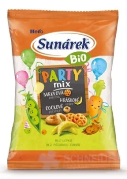 Die Packung enthält eine Mischung aus extrudierten Chips – Karottenscheiben, Erbsenschoten und Linsenringen – zur Getreideernährung von Kleinkindern ab dem 12. Monat, die ihre Ernährung abwechslungsreicher gestalten.