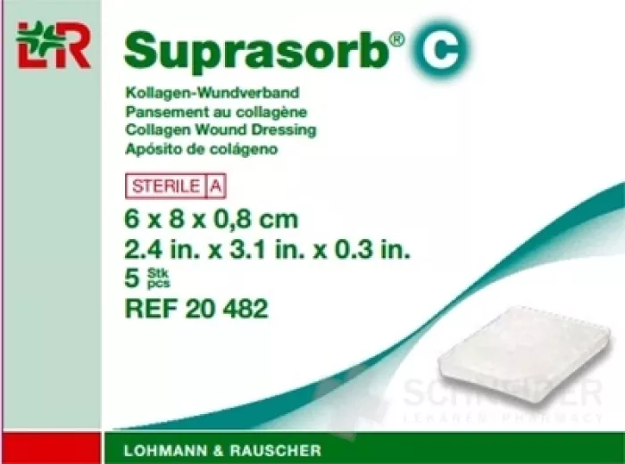 Der Kollagen-Wundverband Suprasorb® C verfügt über eine poröse Struktur mit einer stark ausgeprägten Kapillaraktivität, wodurch er Flüssigkeit aufnehmen kann. Diese physikalische Eigenschaft mit der kontinuierlichen Absorption von Exsudat führt zur Absorption abgestorbener Zellen (z. B. aus nekrotischem Gewebe und Fibrinschicht) sowie von Proteasen und Zytokinen, die eine Entzündung auslösen. Der Kollagen-Wundverband Suprasorb® C besteht aus Kollagen aus Kalbshaut.