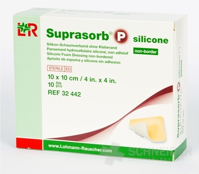 Der Silikonschaumverband Suprasorb® P Silikon mit oder ohne Kleberand ist eine dreischichtige Wundabdeckung mit einer wundseitigen Silikonschicht auf einem hydrophilen Polyurethanschaum und einer wasserdampfdurchlässigen Polyurethan-Basisschicht.