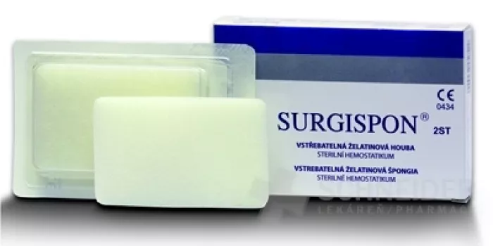 Absorbierbarer blutstillender Gelatineschwamm. Ein steriler, formbarer, wasserunlöslicher, resorbierbarer Schwamm ist für die blutstillende Anwendung zum Auftragen auf eine blutende Oberfläche vorgesehen.