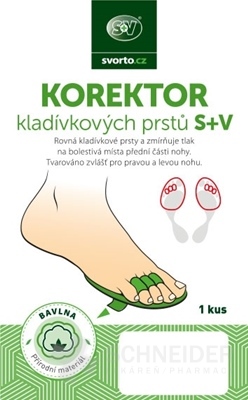 Der 3-Hammer-Zehenkorrektor, dessen Kissen aus weichem, flexiblem Latexschaum mit Baumwollstoffbezug besteht, entlastet schmerzende Stellen im Vorderfußbereich. Es ist getrennt für den linken und rechten Fuß geformt. Das Kissen besteht aus gespannten Schlaufen aus breitem, weichem Gummi, die auf bis zu drei Hammerzehen gelegt werden können. Durch Ziehen am freien Ende des Gummibandes werden die Finger ausgerichtet.