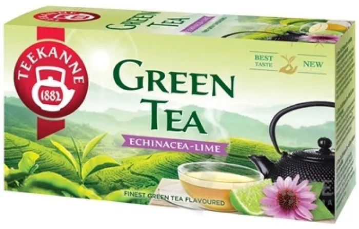 Grüner Tee, mit Früchte- und Kräutertee, aromatisiert, Echinacea- und Limettengeschmack. Zutaten: Grüner Tee (67 %), Apfel, Zimt, Orangenschale, Limettenaroma, Echinacea (2 %), Nelken, Kardamom, Sibirischer Ginseng, Limettenschale (1 %).