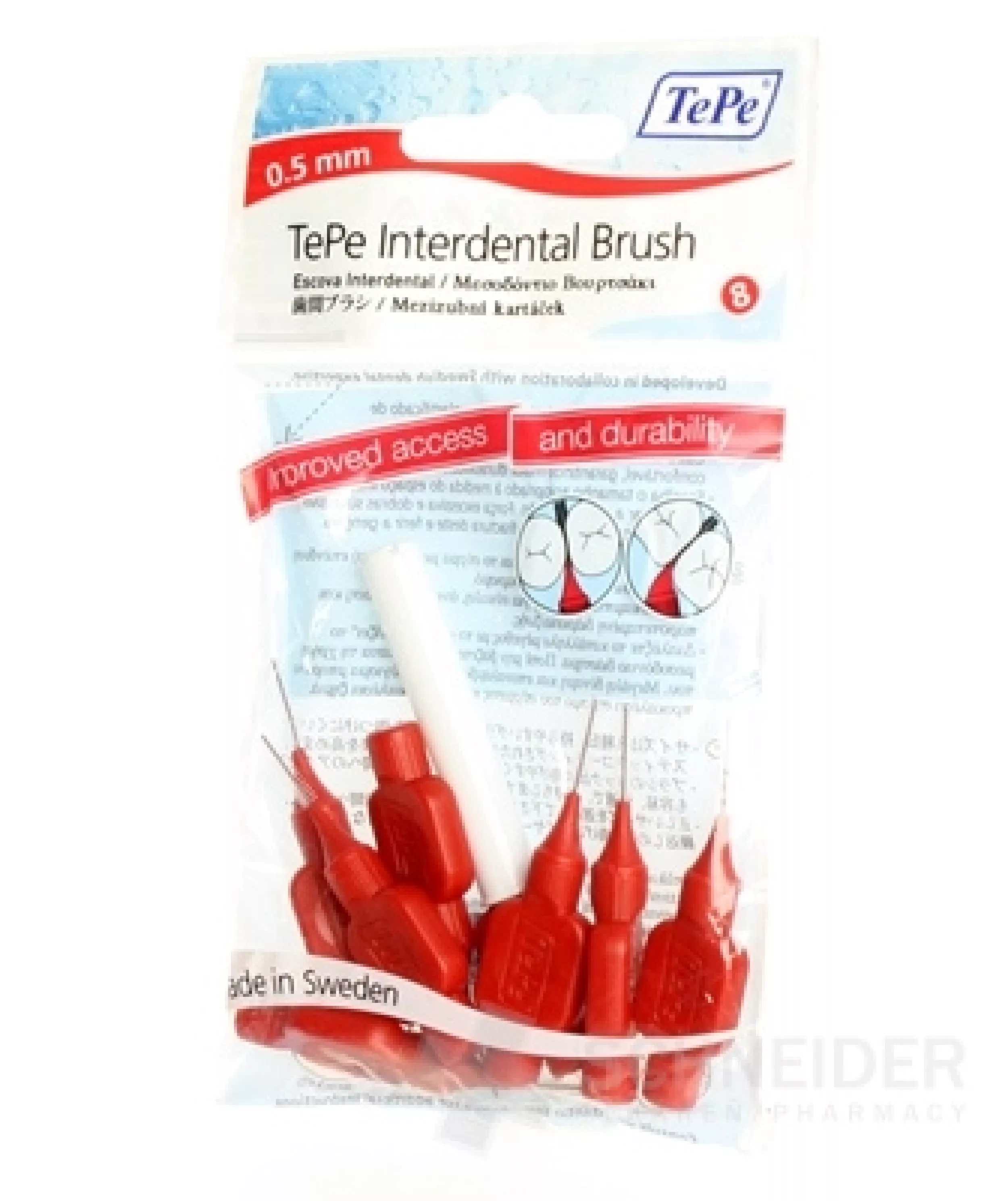 Interdentalbürsten TePe Original Größe 1, zur Zahnpflege, 0,5 mm (roter Griff).