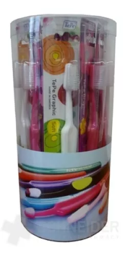Tepe-Zahnbürste mit mittlerem dreieckigem, halbgeradem Schnitt mit 1700 Maca-Fasern und flachem Griff in neuem Design.