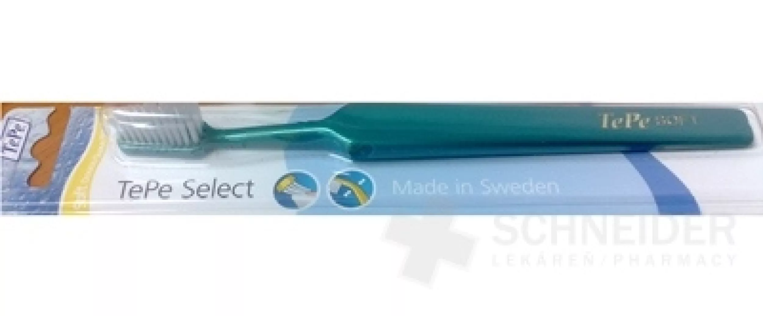 Eine Zahnbürste mit dreieckigem Kopf, feinen Fasern, geradem Schnitt und flachem Griff. Der Bürstenhals kann unter fließend heißem Wasser auf den gewünschten Winkel eingestellt werden.