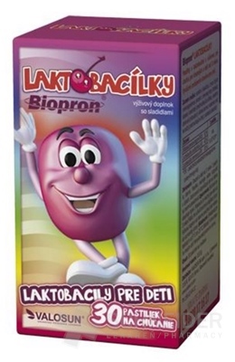Nahrungsergänzungsmittel Laktobazillen mit Kirschgeschmack in Form von Lutschtabletten. Kombination aus 3 Bakterienstämmen ( Bifidobacterium longum, Lactobacillus acidophilus, Lactobacillus rhamnosus) mit einem hohen Anteil an Bifidobakterien.