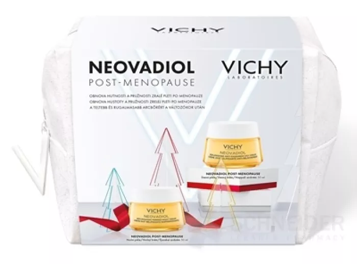 Weihnachtsgeschenkverpackung von Produkten zur intensiven Ernährung, Glättung der Haut und Wiederherstellung des Hautkomfortgefühls in der Zeit nach der Menopause.