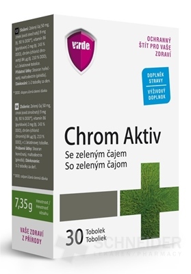 Nahrungsergänzungsmittel mit grünem Tee 50 mg, Chrom (Chromchlorid) 84 µg, Vitamin B6 (Pyridoxin) 2 mg, Zink (Zinkoxid) 9 mg.