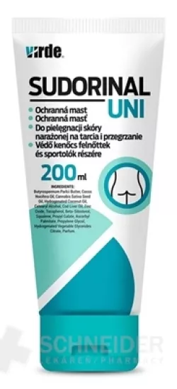 Salbe zum Schutz der Haut an Stellen, an denen übermäßiges Schwitzen auftritt (Leisten, Brüste, im Genitalbereich). Es enthält hochwertige natürliche Öle: Fisch-, Hanf-, Kokos- und Sheabutter. Weitere Wirkstoffe sind Zinkoxid und eine Mischung aus Antioxidantien. Die Salbe eignet sich auch sehr gut zur Pflege von zu Ekzemen oder Akne neigender Haut, sie zieht gut ein.