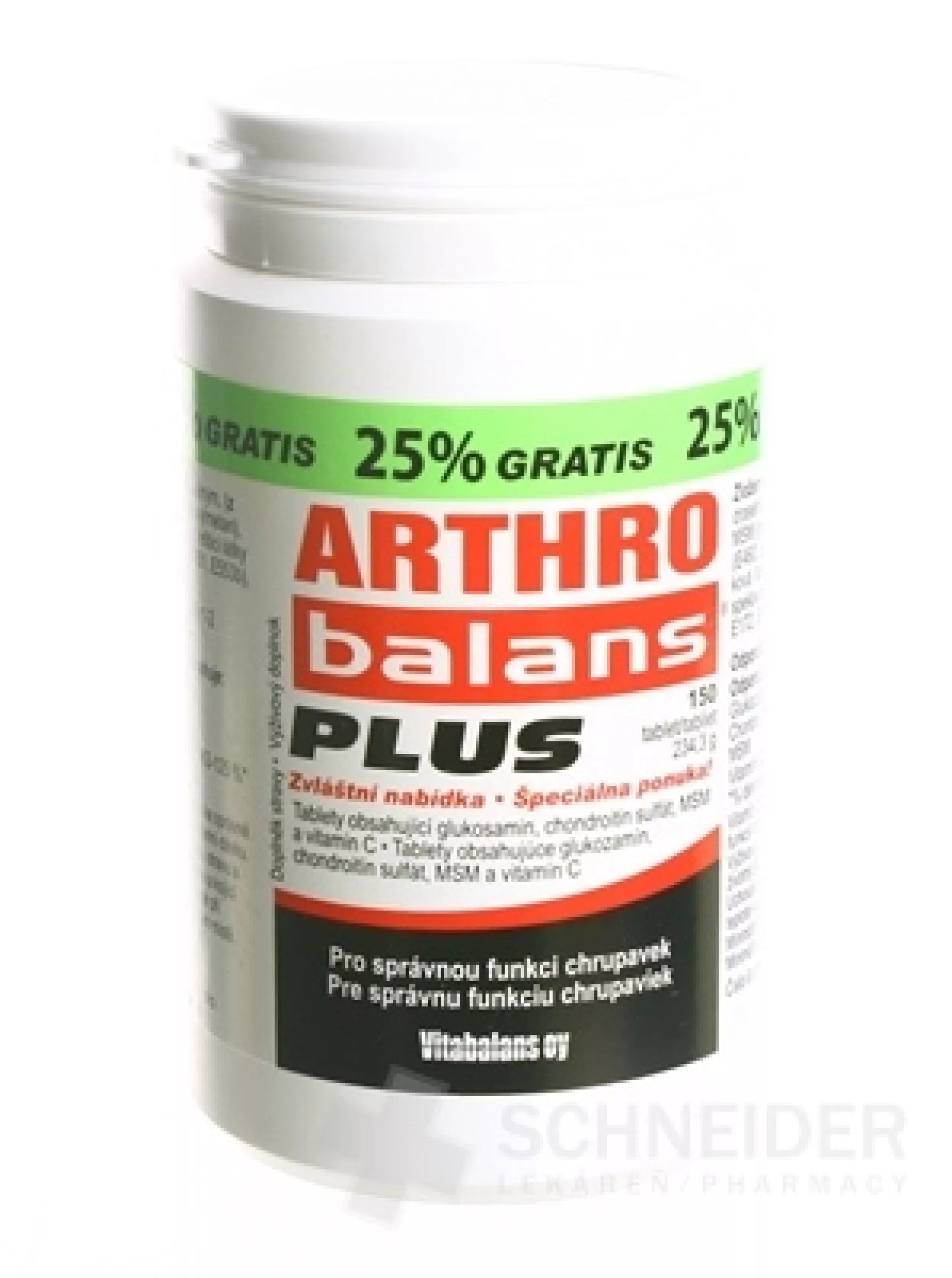Nahrungsergänzungsmittel ARTHROBALANS PLUS – Tabletten mit Glucosamin, Chondroitinsulfat, MSM und Vitamin C. Vitamin C trägt zur ordnungsgemäßen Kollagenbildung und zur ordnungsgemäßen Funktion des Knorpels bei.
