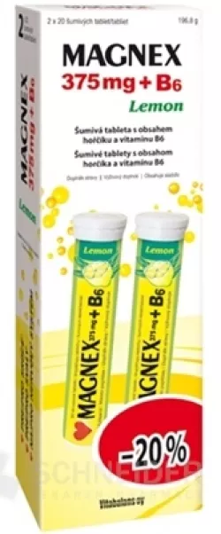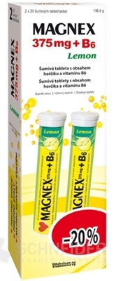 Nahrungsergänzungsmittel. Brausetabletten mit Zitronengeschmack, enthalten Magnesium und Vitamin B6. Magnesium trägt zur ordnungsgemäßen Funktion des Nervensystems und der Muskeln bei.