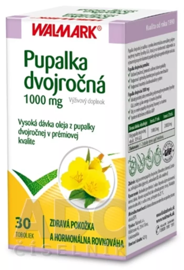Nahrungsergänzungsmittel mit Nachtkerzenöl (1 Kapsel enthält 1000 mg). Nachtkerzenöl (Oenothera biennis) ist eine reichhaltige Quelle essentieller mehrfach ungesättigter Fettsäuren.