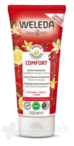 Duschgel – Creme mit natürlichem Aroma aus Anis, Vanille und Zitrone. Das Präparat ist Träger des NATRUE-Zertifikats.