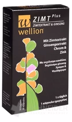 Wellion ZIMT Plus – Nahrungsergänzungsmittel auch für Diabetiker mit Zimt, Chrom, Ginseng und Zink.