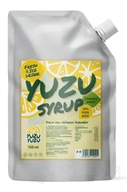 Komposition: Yuzu-Saft aus frischen Zitrusfrüchten 29 %, Wasser, Rohrzucker, Rübenzucker, Fruchtzucker, Stevia, Zitronensäure (Säureregulator), Carboxymethylcellulose (Verdickungsmittel).