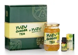 Harmonie-Box für Gesundheit und geistige Ausgeglichenheit enthält: Yuzu-Ingwer-Tee-Getränkekonzentrat 500 g, ätherisches Yuzu-Öl...