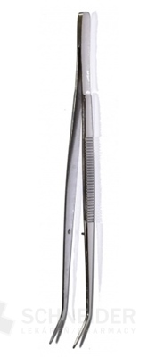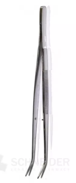 Gebogene Dentalpinzette, 16 cm lang, aus Edelstahl.